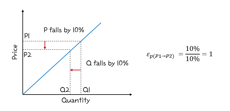 공급의 가격탄력성이 1인 경우 공급은 단위탄력적이다. 공급곡선의 기울기와 판매자들의 가격 민감도는 중간 정도에 해당한다.