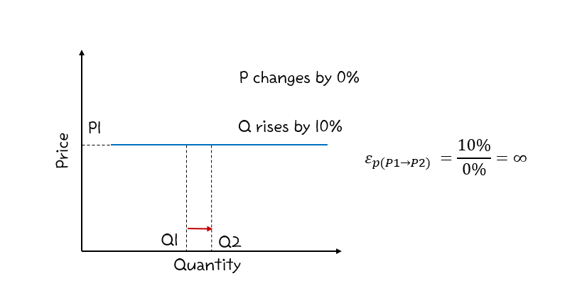 공급의 가격탄력성이 무한인 경우 공급은 완전 탄력적이다. 이때, 공급곡선은 공급량 축에 대해 평행하다. 가격이 변하지 않아도 판매자들의 공급량은 변하므로, 판매자의 가격 민감도는 극도로 민감하다고 할 수 있다.