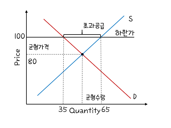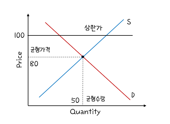 시장의 균형가격보다 상한가가 높은 경우(not binding), 이 제도는 시장 결과에 아무런 영향도 미칠 수 없다.