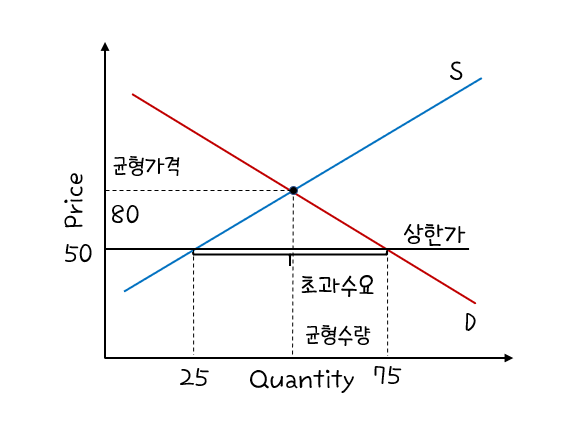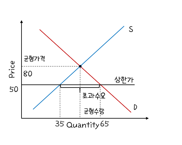 가격상한제를 그래프를 통해 이해해보자.