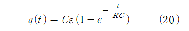 RC회로는 축전기와 코일로 이루어진 회로이다. RL회로와 동일하게 전체 회로에 걸린 전압에 대한 식을 세울 수 있다.