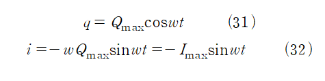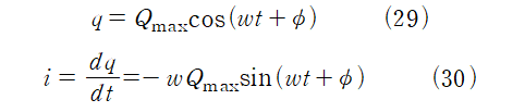 t=0, i=0, q=Q_max 로 가정하였으므로 위상각 φ 는 φ =0이다.