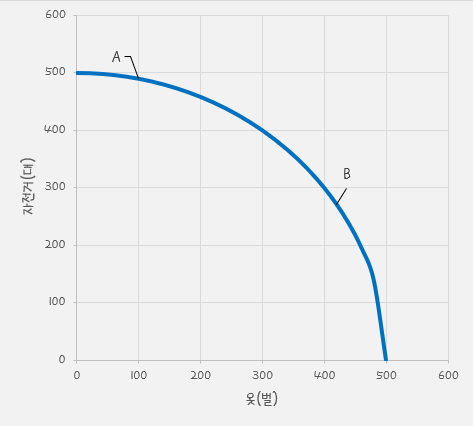 오늘은 생산가능곡선을 그리는 방법과 각각의 그래프 모양에 따른 의미를 알아보고자 한다.