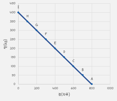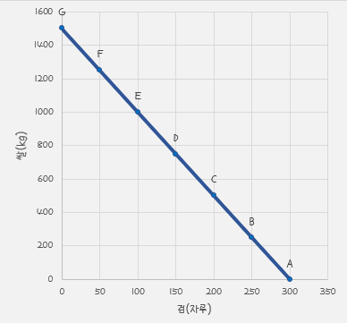 위의 표를 이용하여 각각의 생산가능곡선을 그리면 다음과 같다.